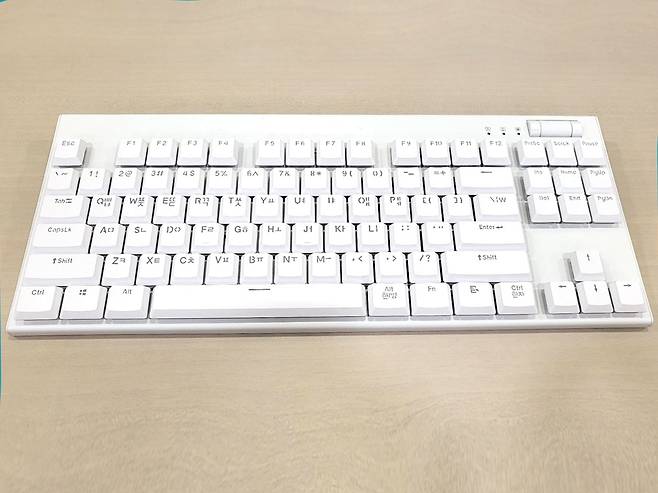 무게도 716g으로 일반적인 기계식 키보드보다 가볍고 키캡과 스위치가 모두 얇게 설계돼 두께도 얇아 가방에 보관하기도 용이하다. 그리고 키캡이 모두 나와 있는 비키 스타일이라 이동 과정에서 발생하는 이물질도 쉽게 제거할 수 있다.