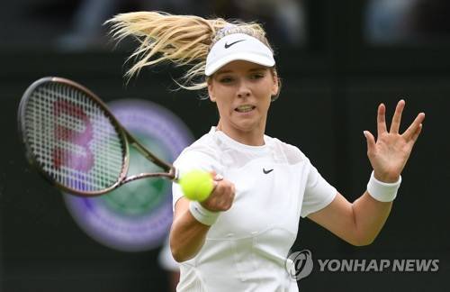 epa10043606 Katie Boulter of Britain in action in the women's second round match against Karolina Pliskova of Czech Republic at the Wimbledon Championships, in Wimbledon, Britain, 30 June 2022. EPA/NEIL HALL EDITORIAL USE ONLY