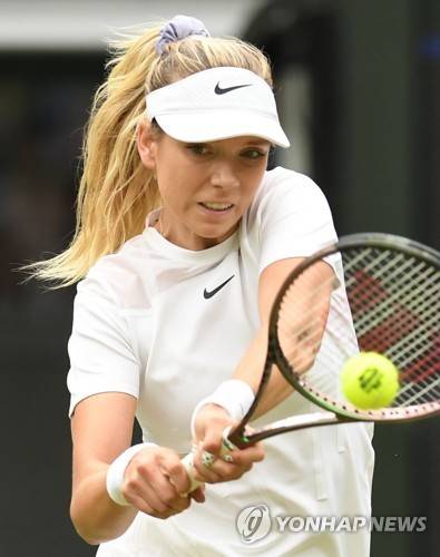 epa10043625 Katie Boulter of Britain in action in the women's second round match against Karolina Pliskova of Czech Republic at the Wimbledon Championships, in Wimbledon, Britain, 30 June 2022. EPA/NEIL HALL EDITORIAL USE ONLY