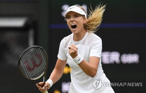 epa10043623 Katie Boulter of Britain reacts after winning the second set in the women's second round match against Karolina Pliskova of Czech Republic at the Wimbledon Championships, in Wimbledon, Britain, 30 June 2022. EPA/NEIL HALL EDITORIAL USE ONLY