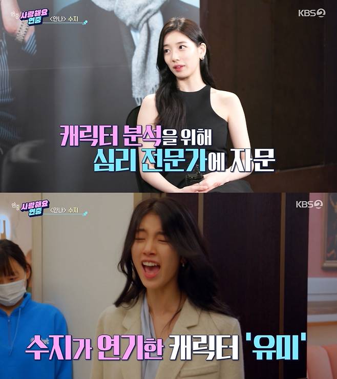 이날 '사랑해요 연중'에서는 수지가 쿠팡플레이 오리지널 드라마 '안나'로 인생 캐릭터를 만나 호평 받게 된 이유를 전했다. 수지는 "잘하고 싶어서 심리 전문가를 만나 디테일하게 상황별로 자문을 구했다"고 말했다.