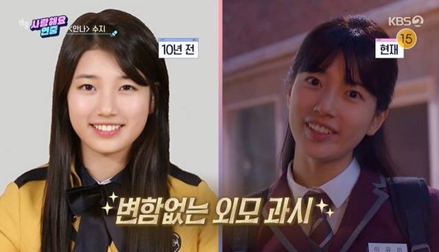 수지는 드라마 ‘안나’에서 고등학생 교복을 입은 사진을 최근 SNS에 올렸고 “10년 전 사진인 줄 알았는데 하나도 안 변했더라”는 칭찬을 받자 “감사하다”고 인사했다.