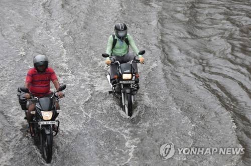 epa10043705 Indian commuters wade through a water logged road after heavy monsoon rain in New Delhi, India, 30 June 2022. Monsoon arrived in the capital with heavy rainfalls that lashed the city in the morning causing traffic disruptions in New Delhi. EPA/RAJAT GUPTA