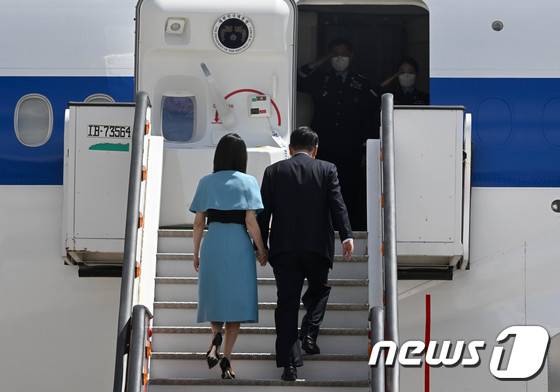 (마드리드=뉴스1) 오대일 기자 = 윤석열 대통령과 김건희 여사가 30일 오후(현지시간) 3박5일 동안 스페인 마드리드에서 열린 나토(NATO 북대서양조약기구) 정상회의 첫 순방을 마치고 바라하스 국제공항에서 공군1호기에 탑승하고 있다. (대통령실사진기자단) 2022.6.30/뉴스1