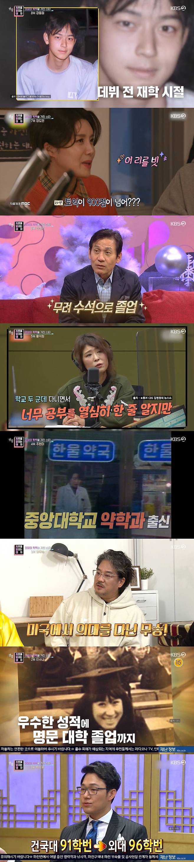 30일 방송된 KBS 2TV '연중 라이브'의 '차트를 달리는 여자'에서는 '의외의 학력을 가진 스타' 순위가 공개됐다.