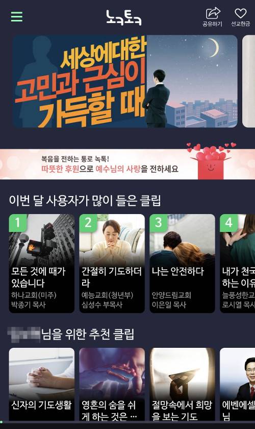 '녹톡'에는 전국 400여 교회 목회자의 설교를 비롯해 유명인 간증, 신앙상담, 성경 낭독, 찬양, 기독서적 등 다양한 오디오 콘텐츠가 담겼다.