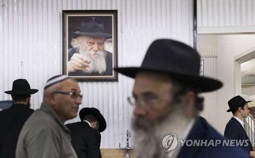 epa10044405 People under a picture the late Lubavitcher Rebbe, Rabbi Menachem M. Schneerson, as Jews from around the world gather to mark the 28th year since the Rebbe?s death and the 120th anniversary of his birth at his grave site at the Old Montefiore Cemetery in the Queens borough of New York, New York, USA, 30 June 2022. In the next few days, up to 50,000 people are expected to visit the grave of the Rebbe, who is considered by many to have been one of the most influential rabbis in recent history and was leader of the Chabad-Lubavitch movement. EPA/JUSTIN LANE