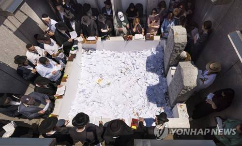 epa10044410 People pray and leave notes at the grave site of the Lubavitcher Rebbe, Rabbi Menachem M. Schneerson, as Jews from around the world gather to mark the 28th year since the Rebbe?s death and the 120th anniversary of his birth at the Old Montefiore Cemetery in the Queens borough of New York, New York, USA, 30 June 2022. In the next few days, up to 50,000 people are expected to visit the grave of the Rebbe, who is considered by many to have been one of the most influential rabbis in recent history and was leader of the Chabad-Lubavitch movement. EPA/JUSTIN LANE