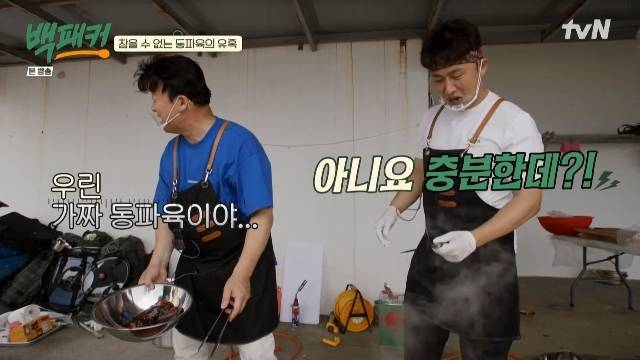6월 30일 방송된 tvN 예능 '백패커' 6회에서는 극한의 출장 요리사 백종원, 오대환, 안보현, 딘딘이 제주 야외 주방에서 돼지 한 마리 요리에 도전했다.