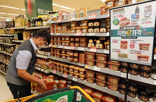 청정원 태양초 찰고추장 2.5kg은 50% 할인된 17800원, 청정원 햇살담은 진간장골드 1.7L는 9900원에 1+1, CJ해찬들 재래식 된장500g은 2개 구매시 50% 할인 판매합니다.