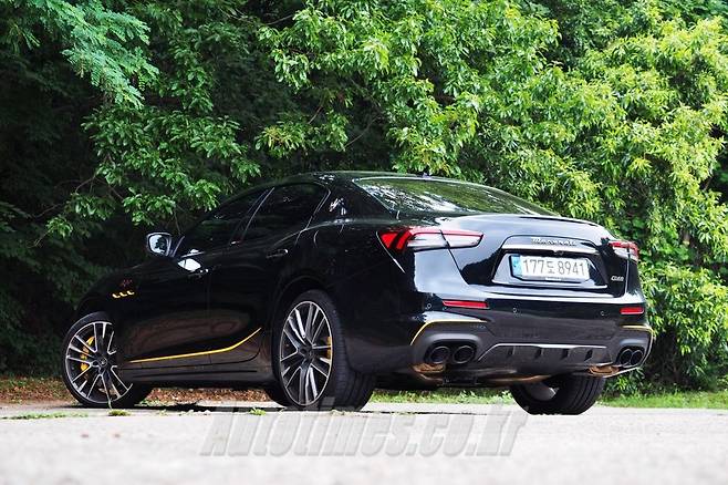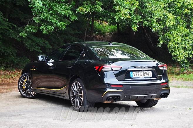 외관은 기존 기블리를 바탕으로 몇 가지 포인트를 줬다. 보닛에 뚫은 'ㄷ'자 모양 덕트와 펜더에 붙은 트로페오 배지, 노란색 사이드 띠를 보면서 특별함을 감지한다. 고성능 피렐리 피제로 타이어와 21인치 휠, 타공 디스크, 노란색 캘리퍼도 시선을 끈다. 이를 제외한 날렵한 헤드램프와 커다란 그릴, 세로형 크롬 바, 마세라티 엠블럼 등은 전부 동일하다.