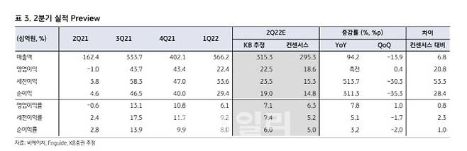 비에이치, 2Q 실적 컨센서스 상회..실적개선 흐름 지속 -KB