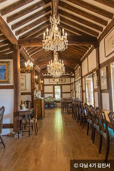 글과 그림이 있는 초봄의 구름 같은 가옥, ‘춘운서옥’은 그 이름만큼이나 아름다운 곳입니다. 한국적인 서화, 조경, 석물 예술품으로 꾸며진 고택은 외관만으로도 마음이 편안해지는 장소예요. 숙박으로 쓰이는 설주실, 효봉실, 석전실 등 이름이 붙은 객실에는 각 방의 이름에 해당하는 작가들의 작품이 전시되어 있고요. 카페 공간은 탁 트인 공간에서 경치와 고택의 모습을 바라보며 음료와 베이커리를 즐길 수 있어요. 카페 내부는 아름다운 샹들리에와 주인장이 직접 여행을 다니며 모은 각종 그릇과 찻잔들이 있어 분위기를 더합니다.