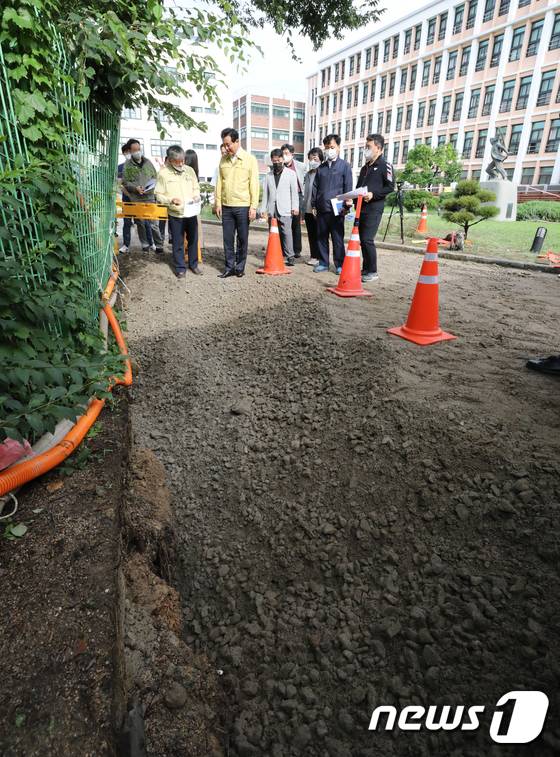 학교 내 싱크홀 보는 오세훈 시장