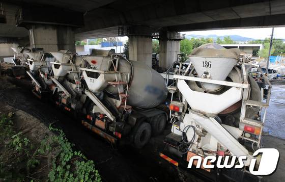 레미콘운송조합과 수도권 주요 레미콘 제조사가 운송비 인상 등에 대해 협상을 벌였으나 최종 합의에 이르지 못하면서 노조 측은 이날부터 운송 거부에 들어갈 계획이다. 2022.7.1/뉴스1