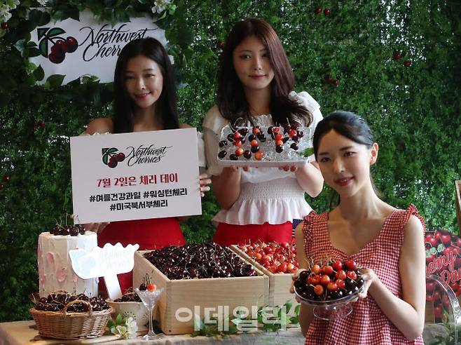 [이데일리 김태형 기자] 체리데이(7월 2일)를 맞아 1일 서울 역삼동 한 카페에서 모델들이 미국북서부체리협회 워싱턴체리 출시행사를 진행하고 있다.