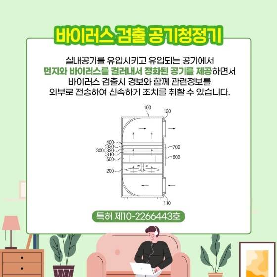 ◆ 바이러스 검출 공기청정기 (특허 제10-2266443호)