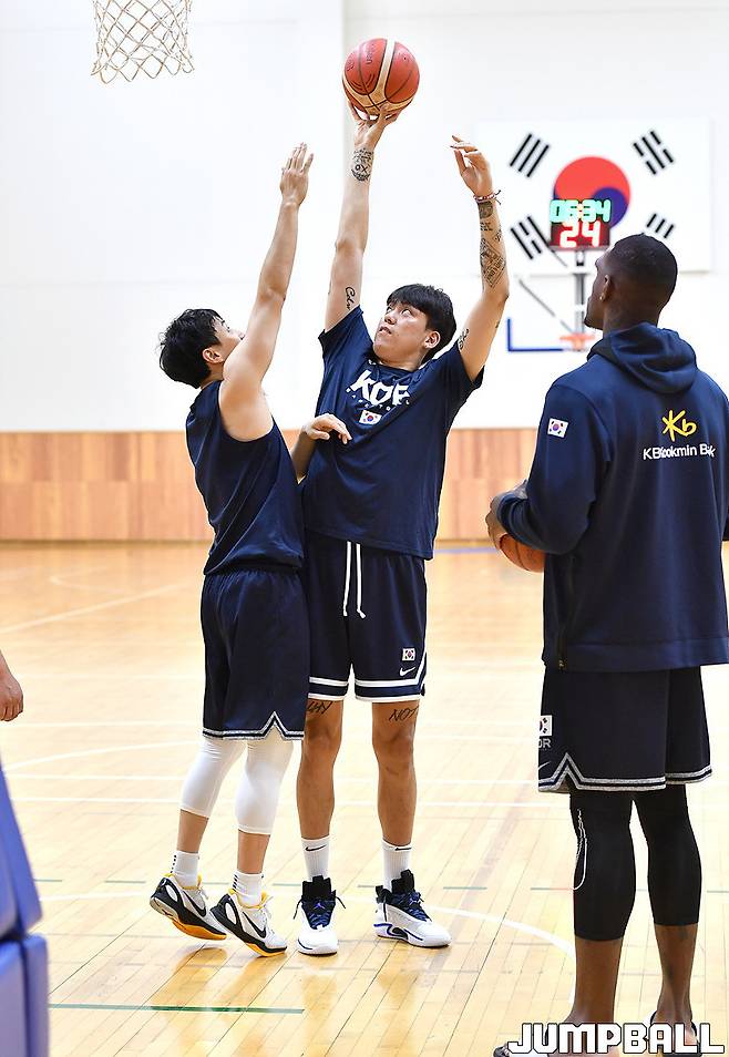 추일승 감독이 이끄는 남자농구대표팀은 오는 7월 12일부터 24일까지 인도네시아 자카르타에서 열리는 2022 FIBA 남자농구 아시아컵에 출전한다. 30일 진천국가대표선수촌 열린 단국대와의 연습경기에서 골밑에서 최준용이 허웅을 상대로 높이 경쟁을 하고 있다.