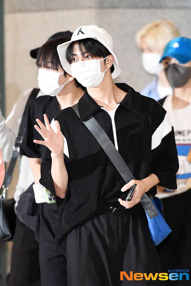크래비티(CRAVITY) 멤버 세림, 앨런, 정모, 우빈, 원진, 민희, 형준, 태영, 성민이 7월 1일 오후 인천 중구 운서동 인천국제공항 제 1여객터미널을 통해 Cravity 1st Fan-Con "Center of Gravity" in Osaka 일정을 마치고 입국하고 있다.