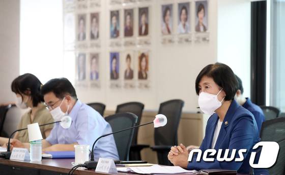 (서울=뉴스1) 김명섭 기자 = 이기순 여성가족부 차관이 1일 서울 종로구 세종대로 정부서울청사에서 열린 인신매매방지 정책 추진방안 관계부처 회의에서 모두발언을 하고 있다. 2022.7.1/뉴스1