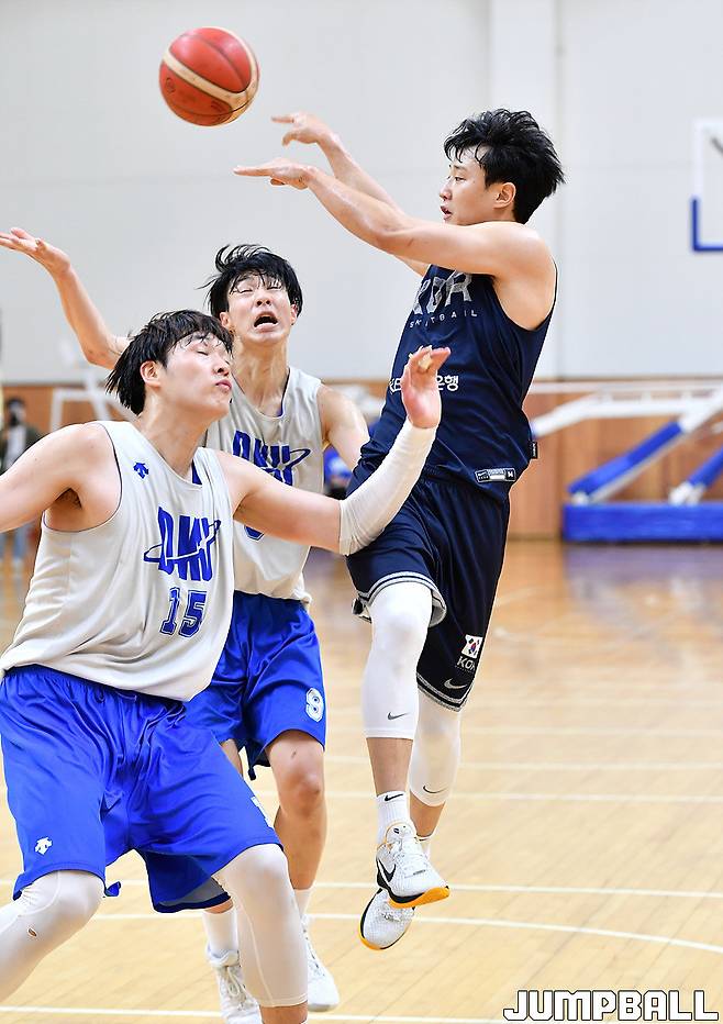 추일승 감독이 이끄는 남자농구대표팀은 오는 7월 12일부터 24일까지 인도네시아 자카르타에서 열리는 2022 FIBA 남자농구 아시아컵에 출전한다. 30일 진천국가대표선수촌 열린 단국대와의 연습경기에서 허웅이 중앙에서 외곽으로 패스를 하고 있다.