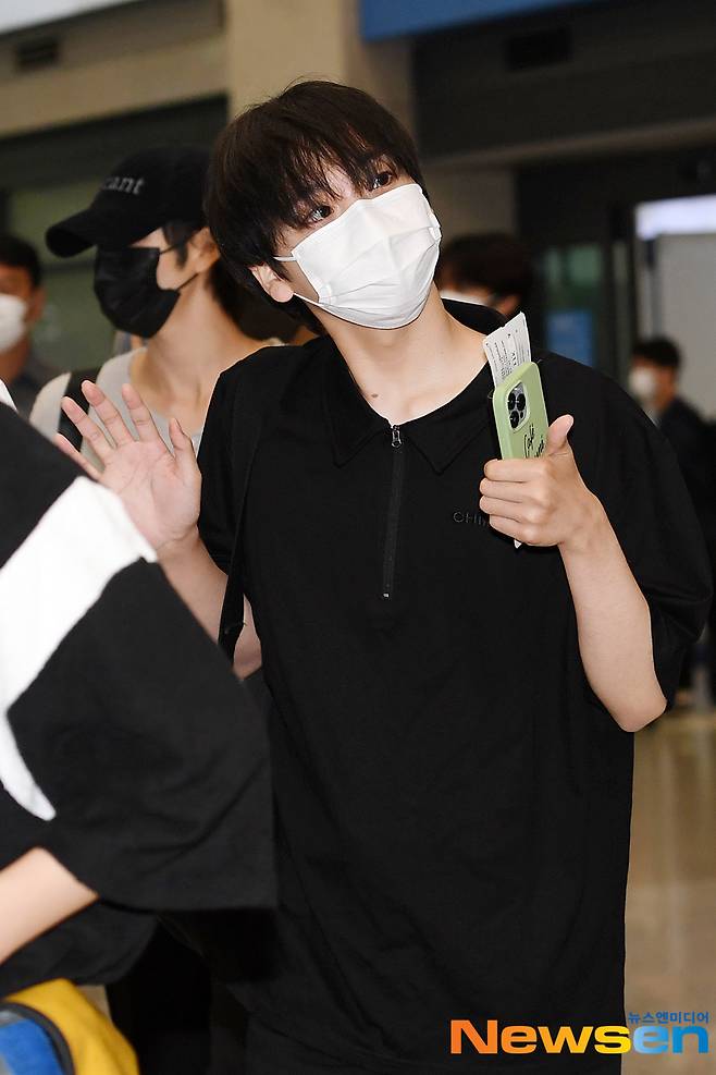 크래비티(CRAVITY) 멤버 세림, 앨런, 정모, 우빈, 원진, 민희, 형준, 태영, 성민이 7월 1일 오후 인천 중구 운서동 인천국제공항 제 1여객터미널을 통해 Cravity 1st Fan-Con "Center of Gravity" in Osaka 일정을 마치고 입국하고 있다.