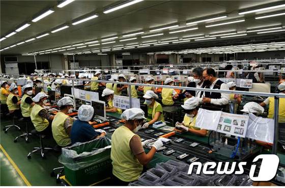 (서울=뉴스1) 김명섭 기자 = 윤종원 IBK기업은행장이 3박 5일간 베트남 출장 일정을 마치고 지난 30일 귀국했다. 출장 기간 중 베트남 정부기관 및 금융기관과 중기금융 협력사업을 논의하고 현지진출 국내기업에 대한 금융지원 현황을 점검했다. 사진은 지난 달 27일 윤종원 IBK기업은행장이 하노이에 소재한 인탑스 현지법인 사업장을 방문해 작업 현장에 대한 설명을 듣고 있는 모습. (IBK기업은행 제공) 2022.7.1/뉴스1