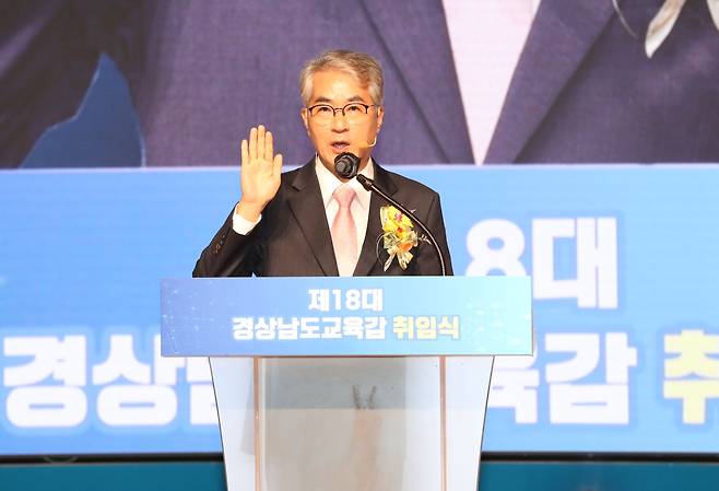 박 교육감은 "오직 경남교육, 오직 경남 학생을 위하여 미래교육으로 나아가겠다"라고 선언했다.