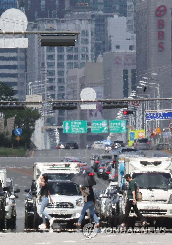 (서울=연합뉴스) 류영석 기자 = 1일 오후 폭염주의보가 발효 중인 서울 여의대로에 아지랑이가 피어오르고 있다.2022.7.1