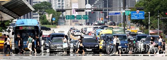 (서울=연합뉴스) 류영석 기자 = 1일 오후 폭염주의보가 발효 중인 서울 여의대로에 아지랑이가 피어오르고 있다.2022.7.1