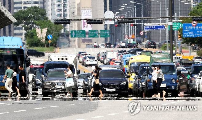 (서울=연합뉴스) 류영석 기자 = 1일 오후 폭염주의보가 발효 중인 서울 여의대로에 아지랑이가 피어오르고 있다.2022.7.1