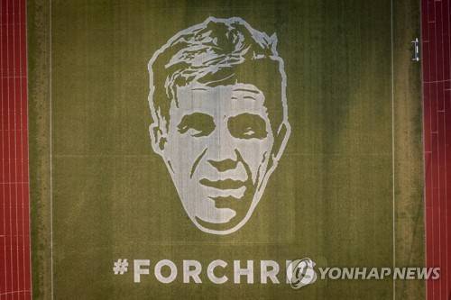 epa10045100 A photo taken with a drone shows a portrait done by a robot of late cyclist Chris Anker Soerensen in Holbaek Sportsvillage, Denmark, 30 June 2022 (issued 01 July 2022). Soerensen was a Danish professional road bicycle racer who took part in Tour the France in 2012. He died in 2021. EPA/Mads Claus Rasmussen DENMARK OUT