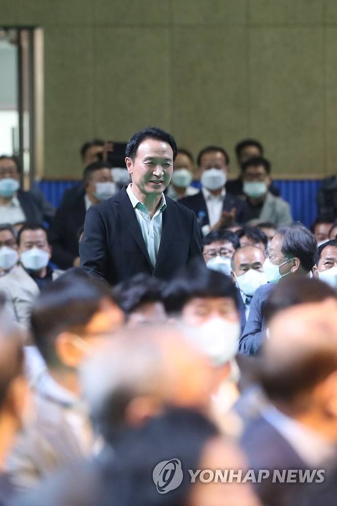 (남양주=연합뉴스) 임병식 기자 = 임태희 경기도교육감이 1일 경기도 남양주시 이패동 남양주체육문화센터에서 열린 민선5기 경기교육감 취임에 즈음한 경기교육 '소통' 콘서트에서 관객석에 마련된 자리로 이동하고 있다. 2022.7.1