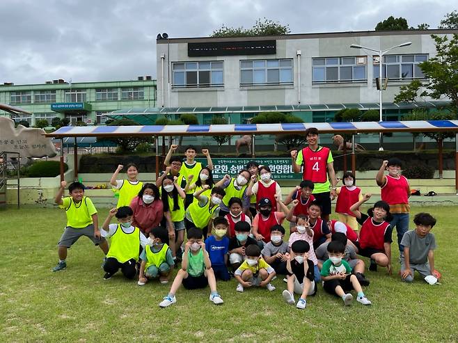 [스포탈코리아] 김희웅 기자= 전북현대모터스FC의 김문환과 송범근이 충남 비인초등학교를 방문해 전교 학생들(32명)과 만남의 시간을 가졌다.