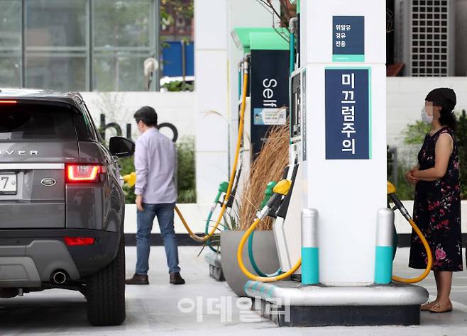 [이데일리 김태형 기자] 유류세가 인하된 1일 소비자들이 서울 강남구 한 셀프 주유소에서 주유를 하고 있다.