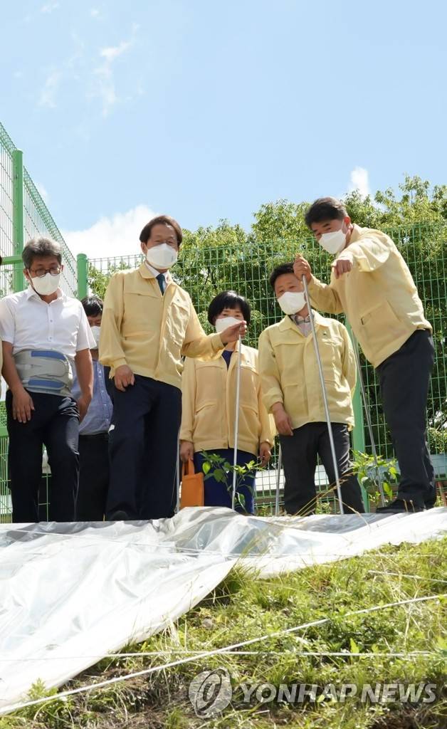 (서울=연합뉴스) 조희연 서울시 교육감(왼쪽 두 번째)이 1일 오후 집중호우로 인해 피해가 발생한 서울 관내 초등학교 현장을 둘러보고 있다. 2022.7.1 [서울시 교육청 제공. 재판매 및 DB 금지]