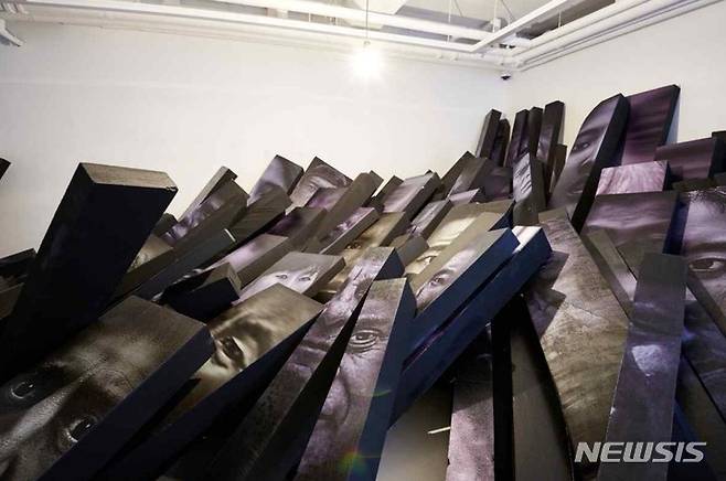 100여개의 스티로폼(styrofoam) 기둥에 흑백으로 인쇄한 설치작품 1점과 솜(cotton)에 컬러로 인쇄한 작품 1점을 선보인다.