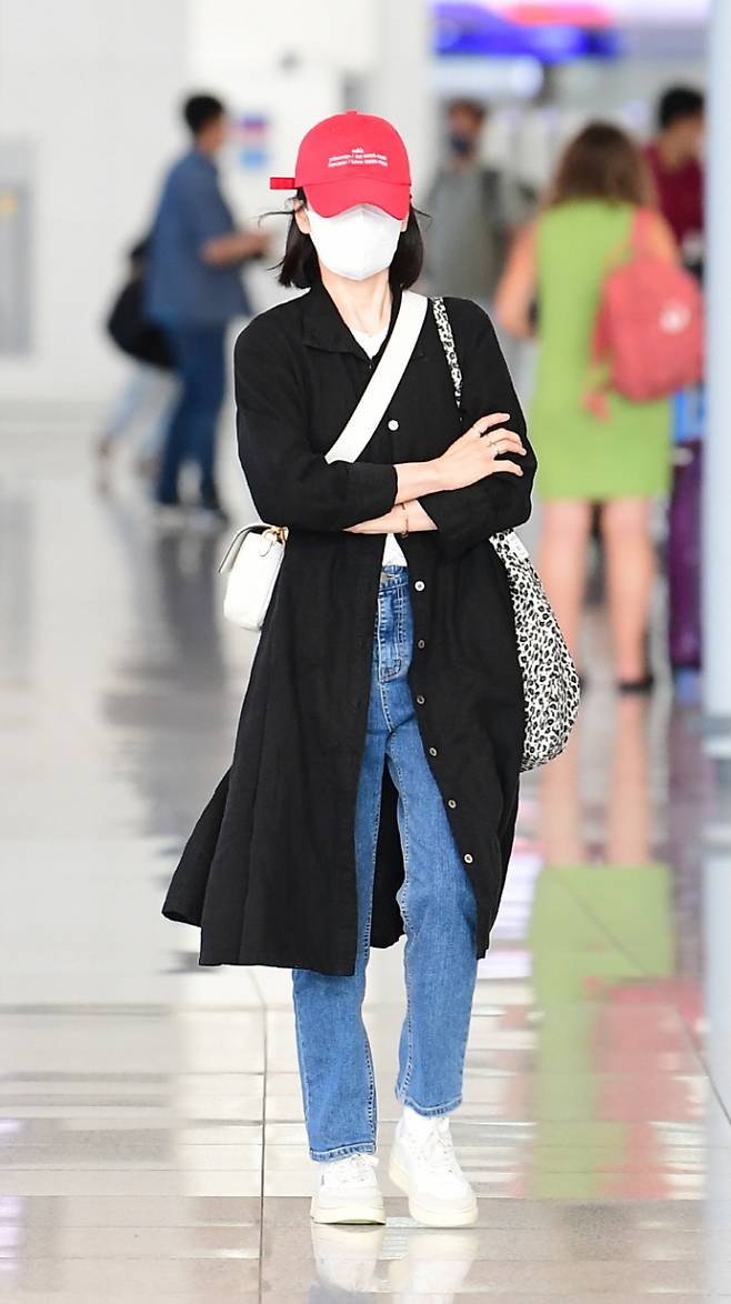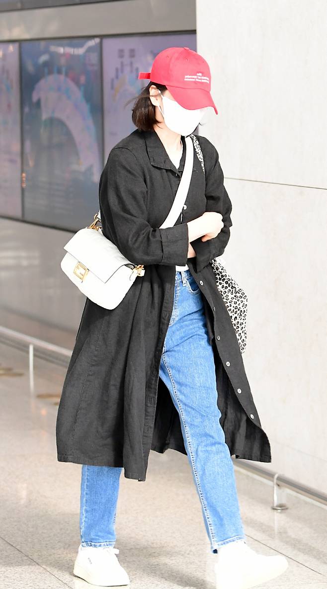 이날 송혜교는 청바지와 흰티에 블랙 재킷을 입은 수수한 차림에 펜디의 아이코닉한 바게트 백을 매치해 편안하면서도 스타일리시한 공항 패션을 완성했다.