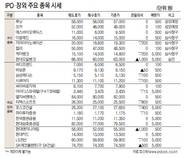 [표]IPO장외 주요 종목 시세( 7월 1일)