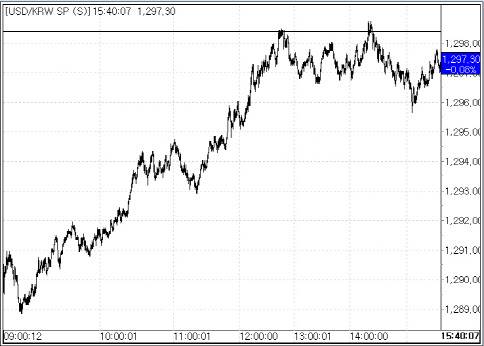 1일 서울외국환중개에 따르면 환율은 전 거래일 종가(1298.40원) 대비 1.10원 내린 1297.30원에 마감했다. 전날 0.60원 하락한 뒤 이틀 연속 1290원대에서 하락한 것이다. 이날 환율은 전일 대비 8.40원 내린 1290.0원에 시작해 장초반 1288.80원까지 하락했으나 점차 낙폭을 줄여 1원 가량의 하락폭으로 마감했다.
