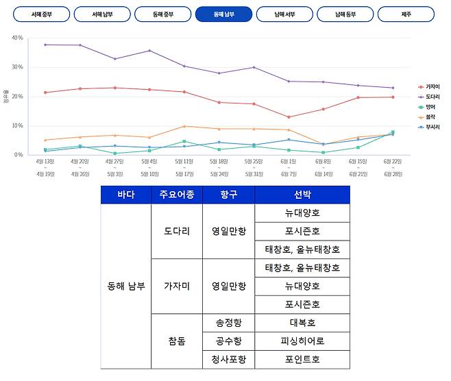 동해 남부에서는 영일만항, 송정항, 청사포항을 중심으로