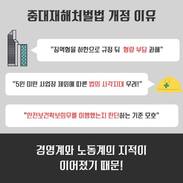 [카드뉴스]시행 5개월만에 중대재해처벌법 개정 그 이유는?