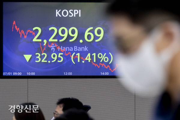 코스피 장중 2300선 붕괴[경향포토]