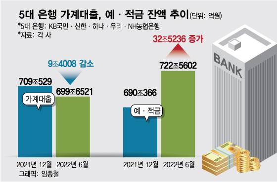 이자 오르니..가계대출 9조 줄고, 예·적금 32조 늘었다