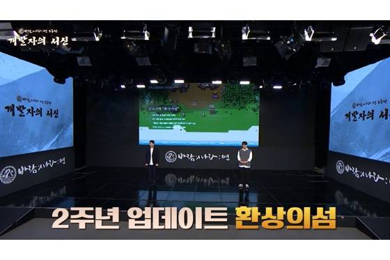 이날 방송에는 '바람의나라: 연' 개발을 총괄하는 슈퍼캣 이태성 디렉터와 조승모 기획팀장이 출연해 오는 14일 예정된 2주년 업데이트 콘텐츠인 신규 지역 '환상의 섬'을 소개했다.