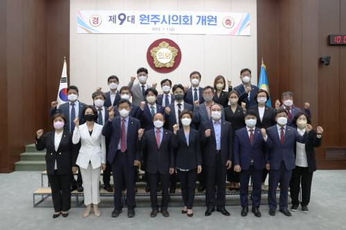 제9대 원주시의회(의장 이재용) 개원식이 오늘(1일) 오후 3시 시의원 및 원주시장을 비롯한 집행부 간부 공무원 등이 참석한 가운데 의회 본회의장에서 열렸다.