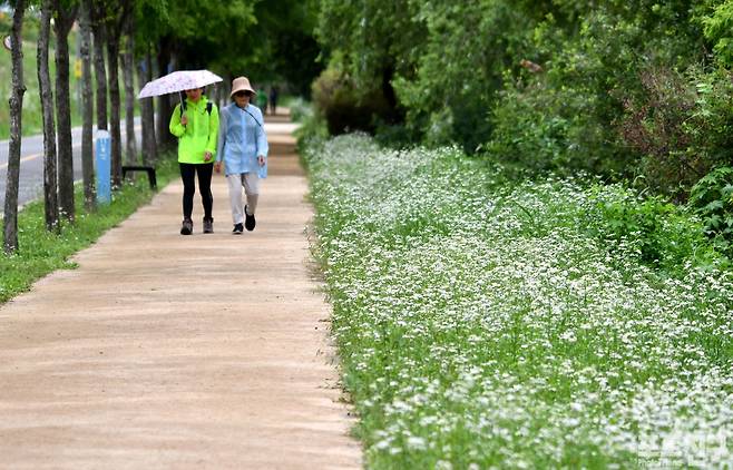 방화대교 부근은 흰 들꽃이 많이 피었습니다.