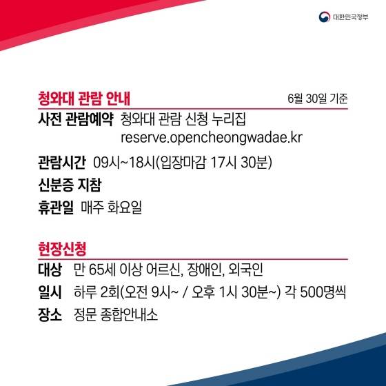 [청와대 관람 안내] * 6월 30일 기준