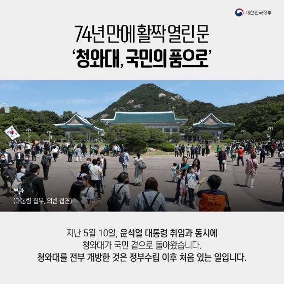 지난 5월 10일, 윤석열 대통령 취임과 동시에 청와대가 국민 곁으로 돌아왔습니다.