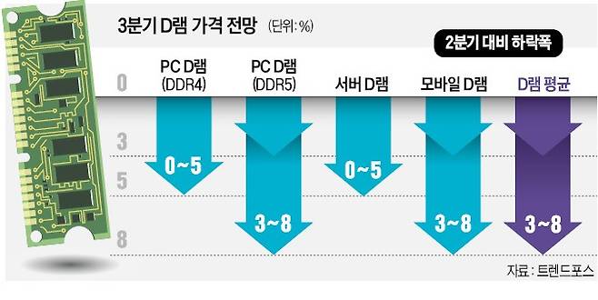 전문가들은 반도체 가격 하락에 대해 인플레이션(물가 상승)과 이에 따른 소비 감소를 비롯해 러시아의 우크라이나 침공, 중국 경제 둔화 등을 원인으로 보고 있다. 글로벌 공급망 문제와 러시아의 우크라이나 침공에 따른 식량·에너지 가격 급등으로 물가가 오르면서 소비자들이 지갑을 닫고 있기 때문이다. 가전과 모바일 등 전자제품 소비 감소가 반도체 수요 감소로 이어지고 있다는 분석이다. 반도체 기업 관계자는 “2분기까지는 기존 계약 물량 등으로 시장 예상에 부합하는 실적을 낼 수 있지만 3분기부터는 실적 악화를 피할 수 없을 것”이라고 전망했다.